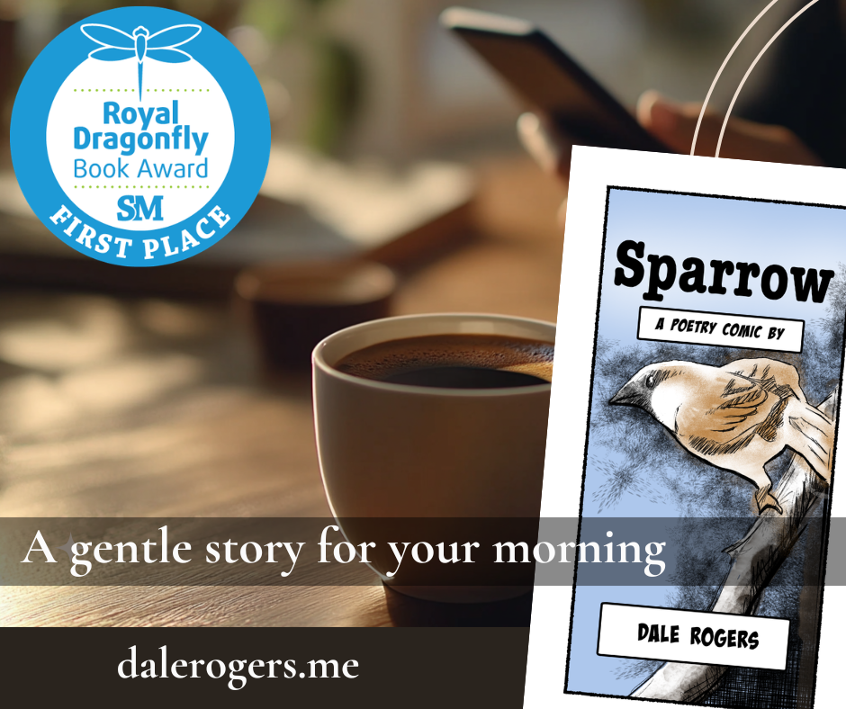 Discover the transformative power of resilience and grace in “Sparrow” by Dale Rogers. This unique poetry comic book blends evocative imagery with the lyrical beauty of verse to take readers on a journey of self-discovery and introspection through the eyes of a sparrow braving the elements.